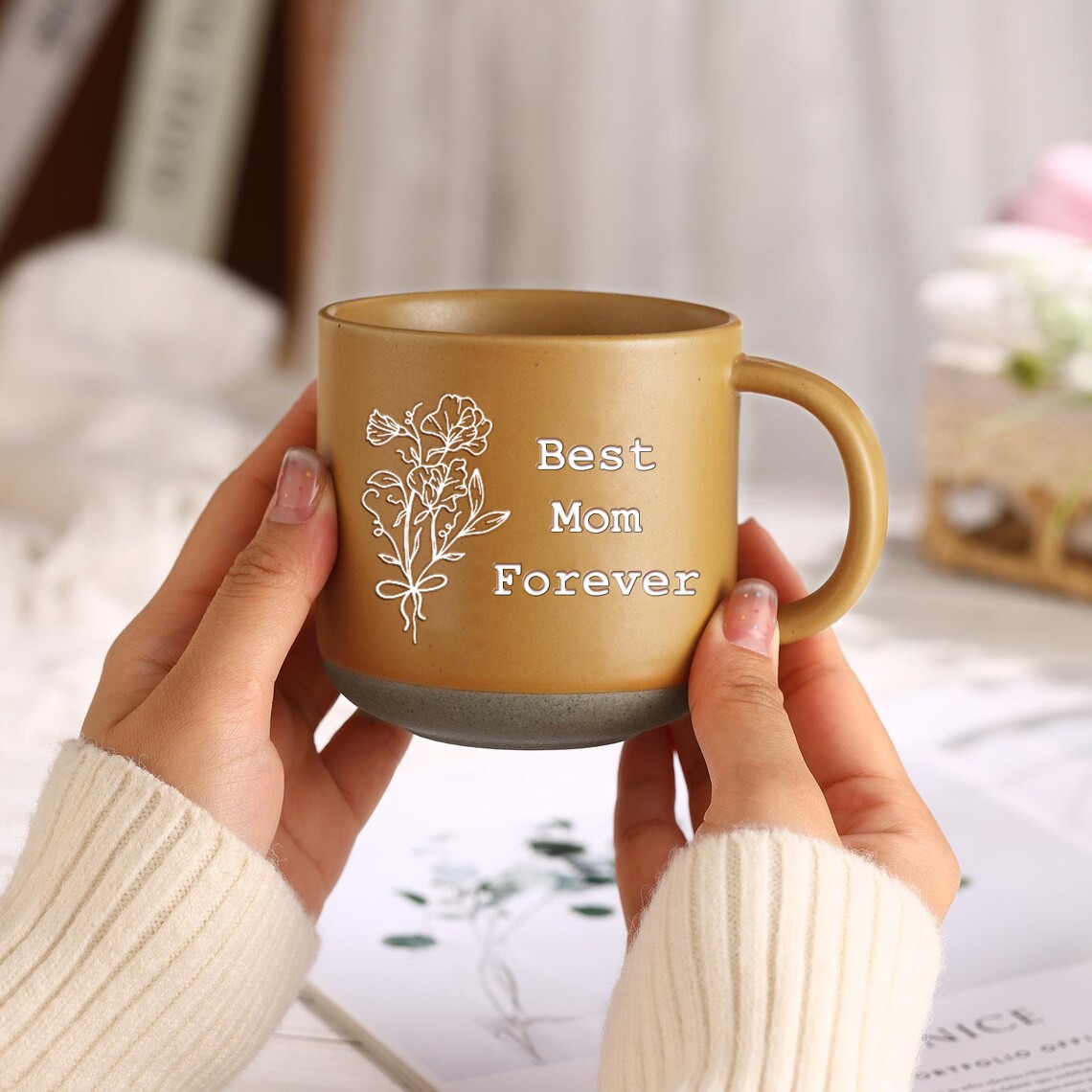 Custom Coffee Mug Birth Flower Mug For Mom Mother's Day Gift