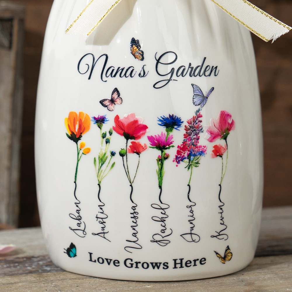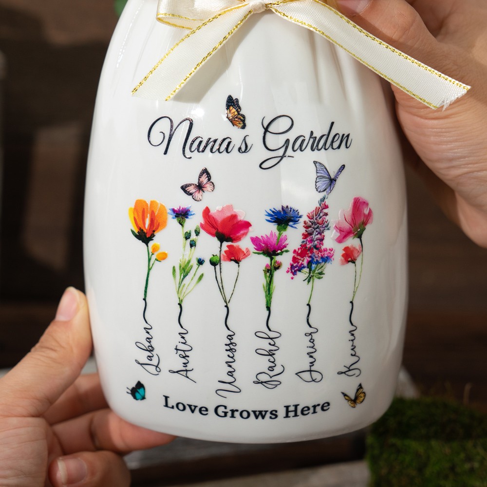 Custom Grandma's Garden Birth Month Flower Vase With Grandchildren Name For Mother's Day Gift