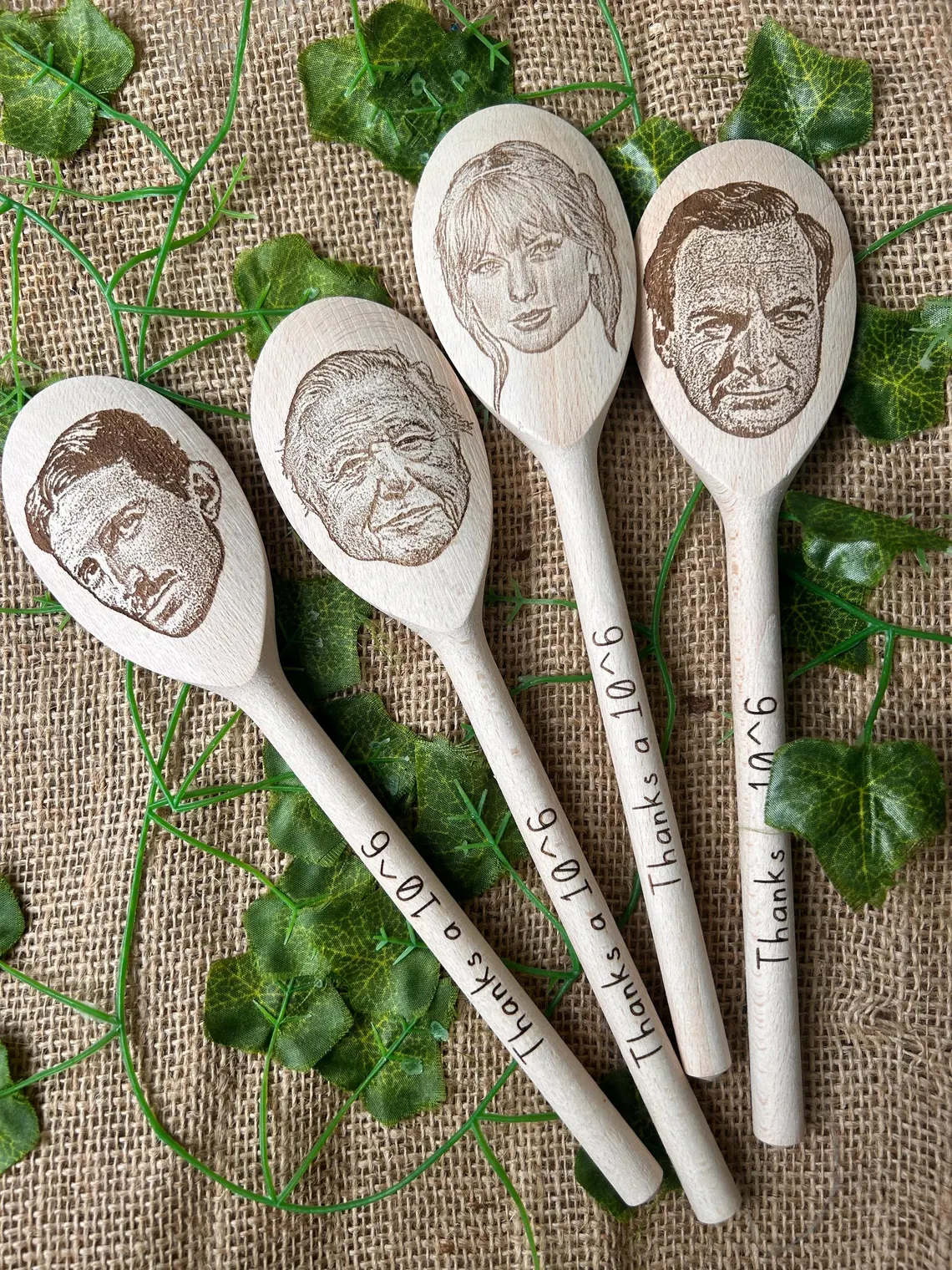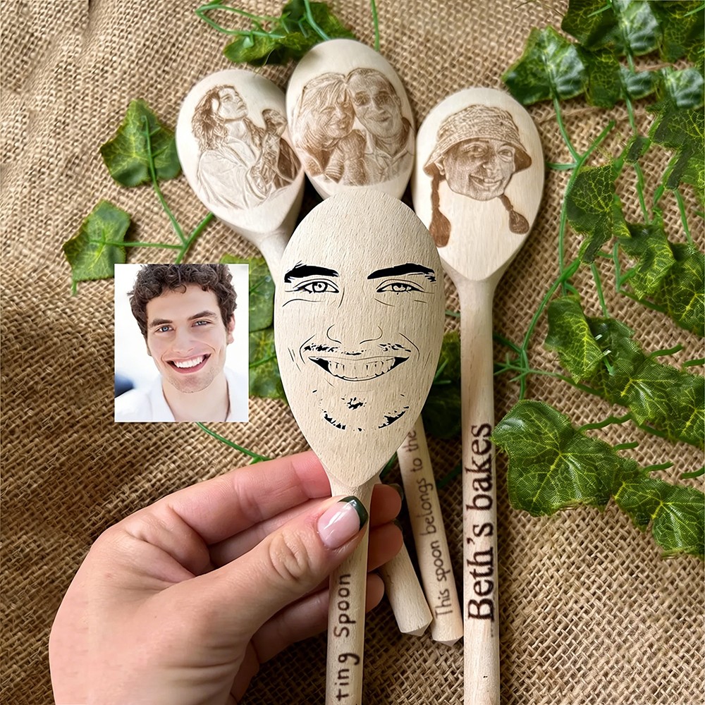 Custom Wooden Spoons with Carved couple Name and Faces — Fun & Unique Gift