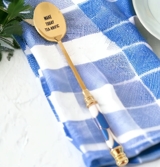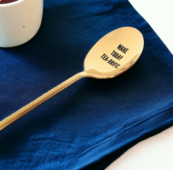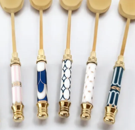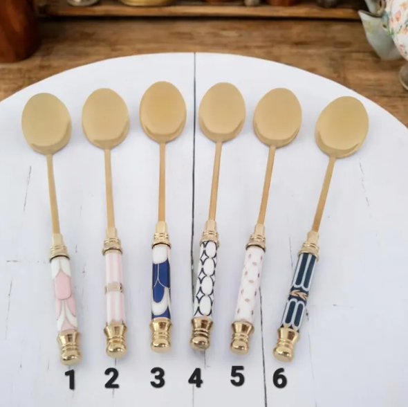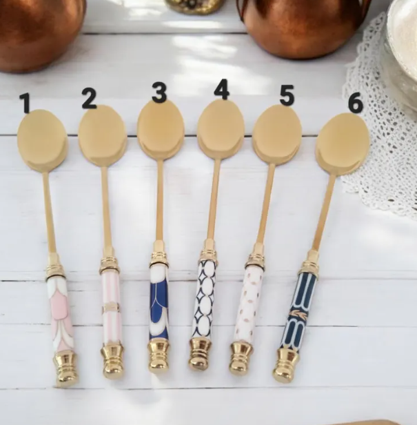 Engraved Coffee Spoon For Couple Valentine's Day Gift- Custom Tea Spoon - Gold Tea Spoon - Ceramic Handle Coffee Spoon - Petite Stainless Steel spoon