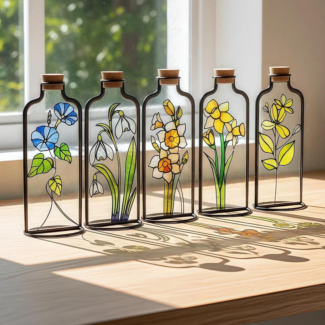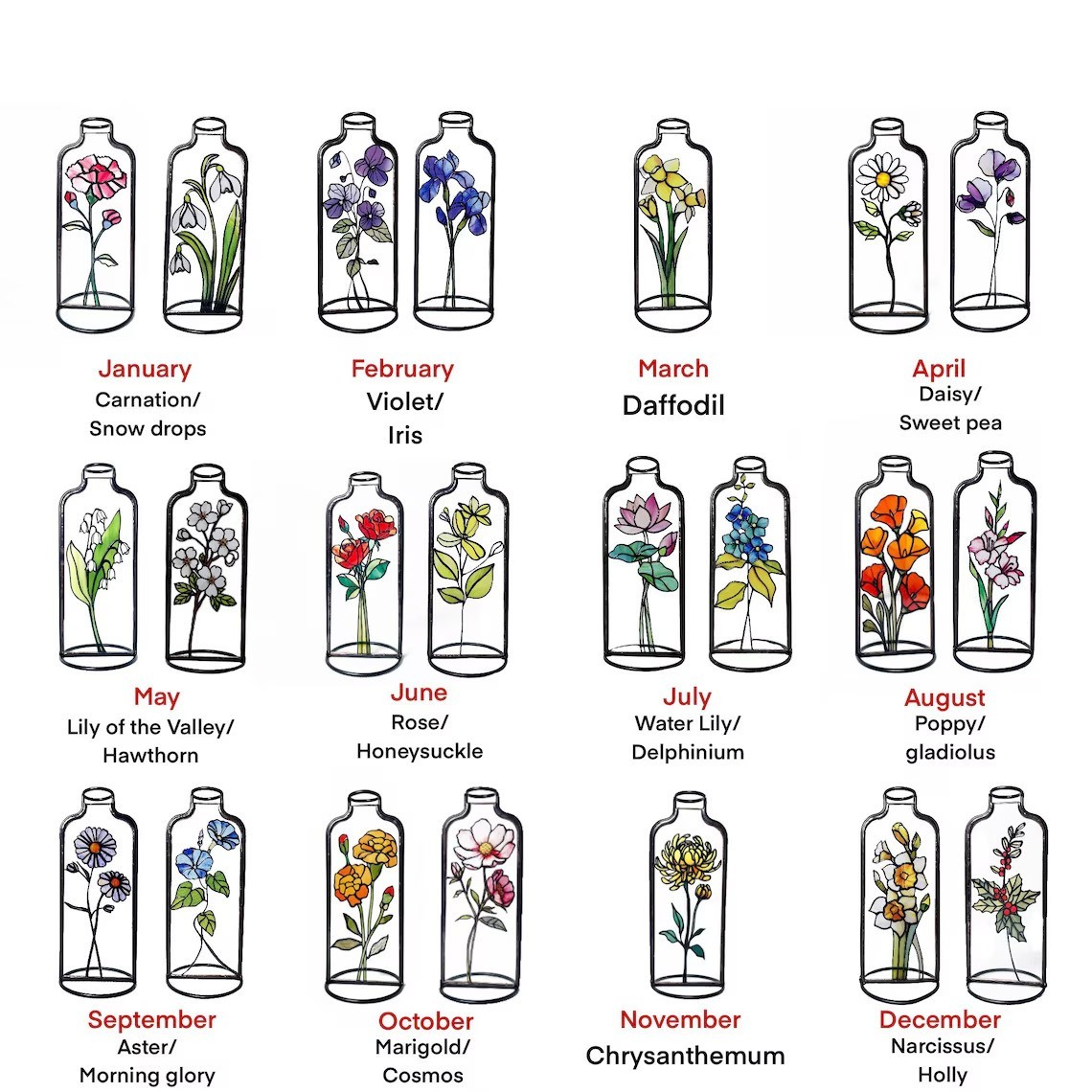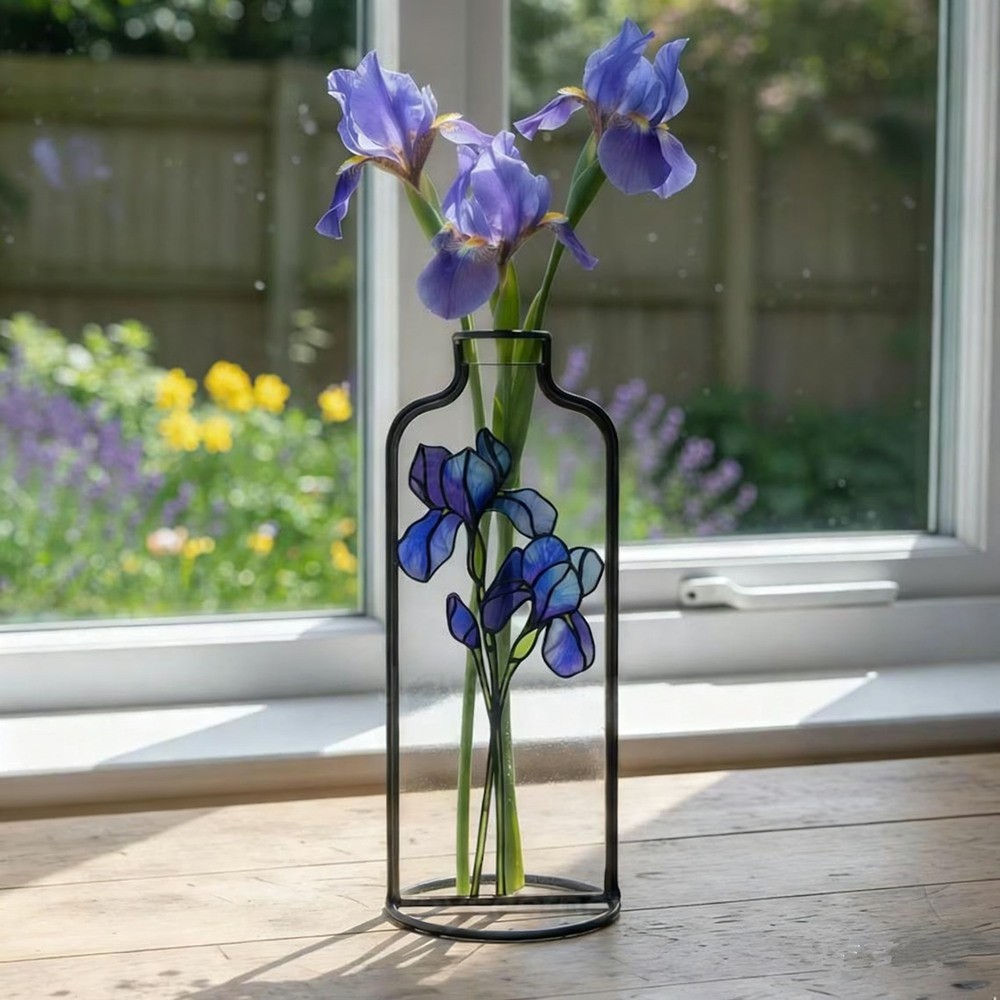 Personalized Birth Flower Stained Glass Vase Mother's Day Gift For Mom Grandma