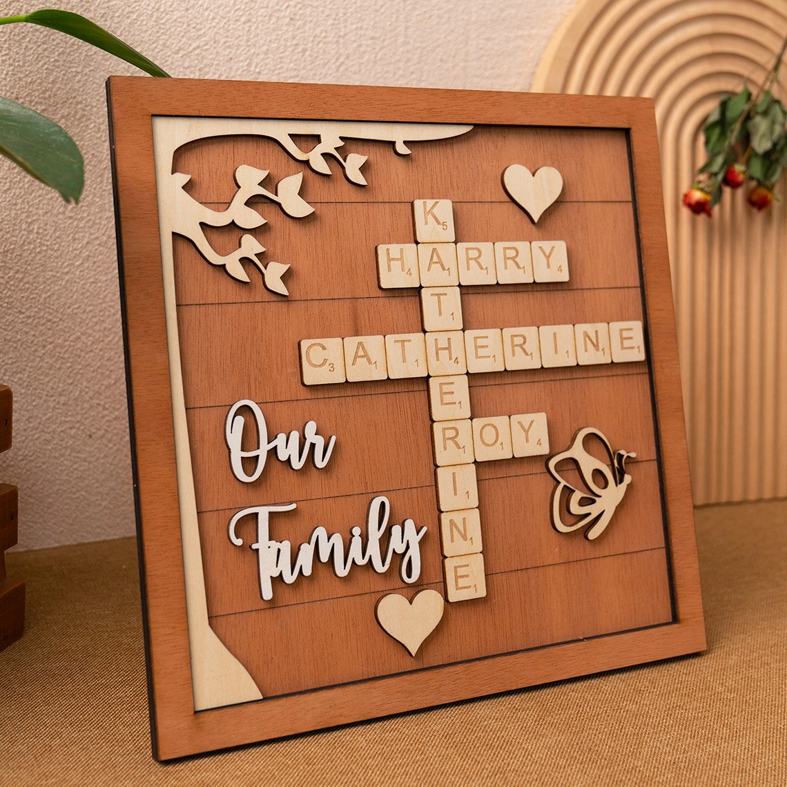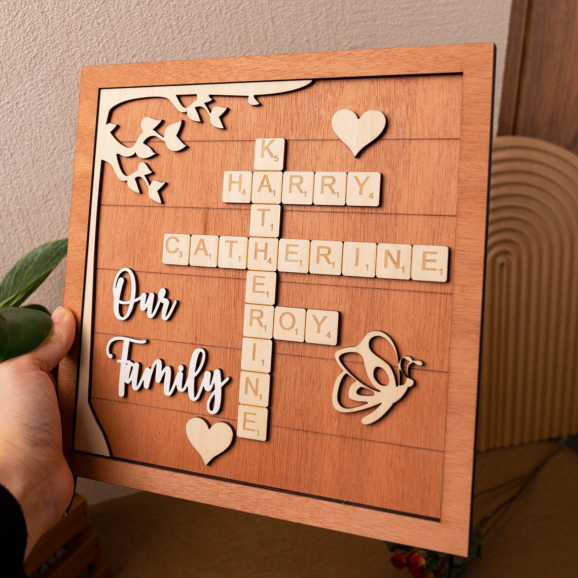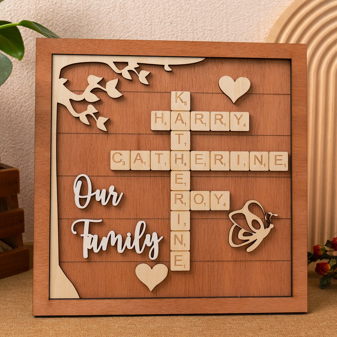 Personalized Family Scrabble Frame | A Heartfelt Wooden Sign for Parents & Grandparents