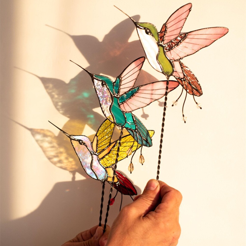 Stained Glass Hummingbird Plant Stakes For Mom Grandma Christmas Gift