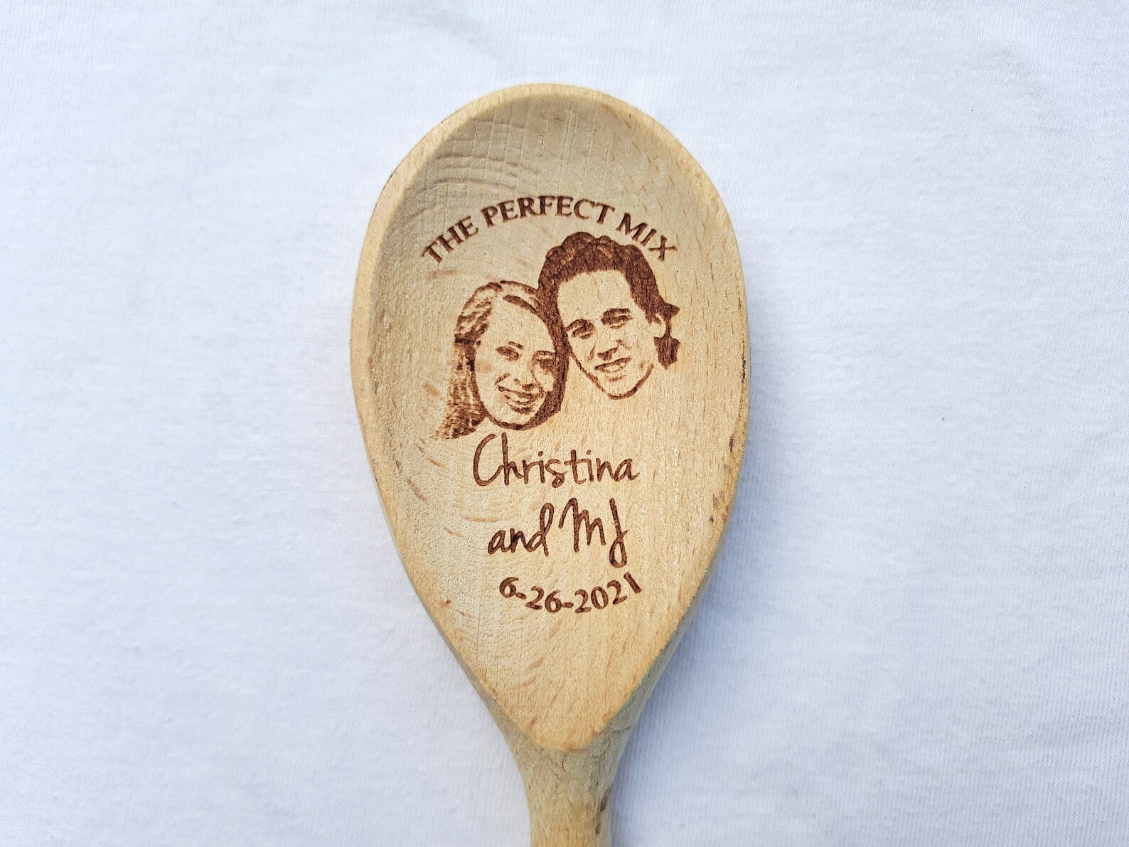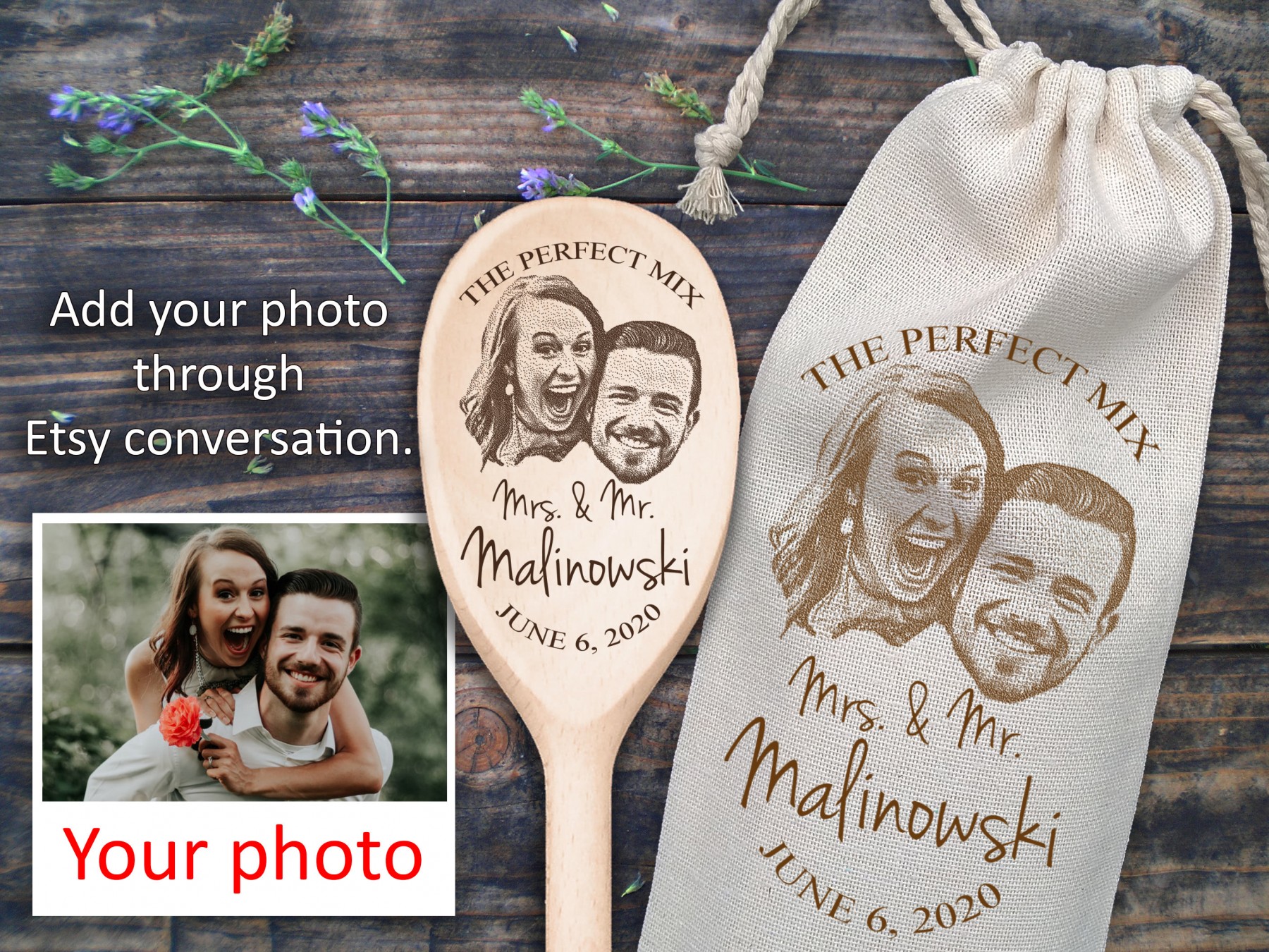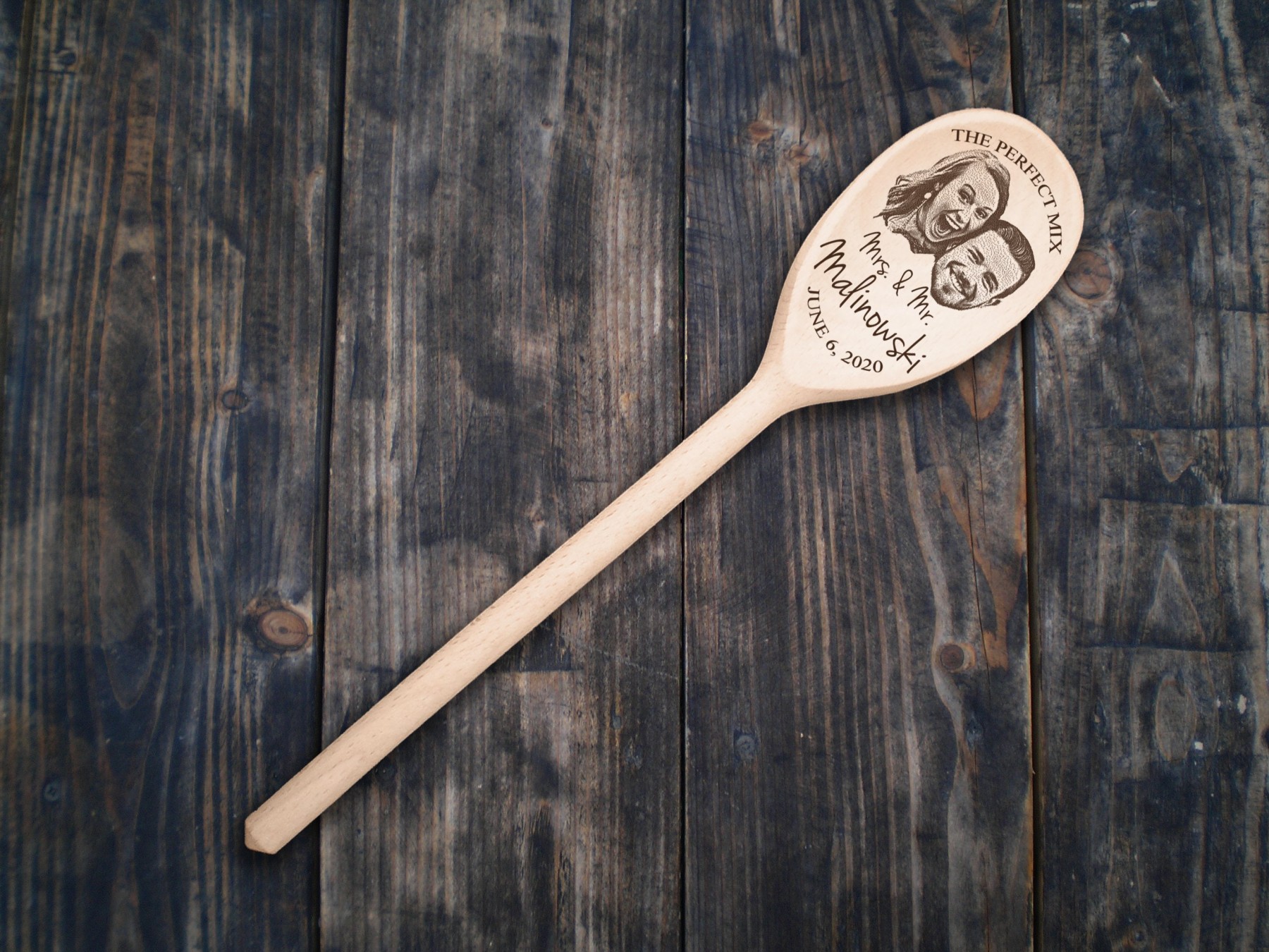Your Photo on Wood Spoon Perfect Mix Couple Wedding Gift Bridal Shower Favor Personalized Name Date 5th Anniversary,Valentine's Day-Gift For couples